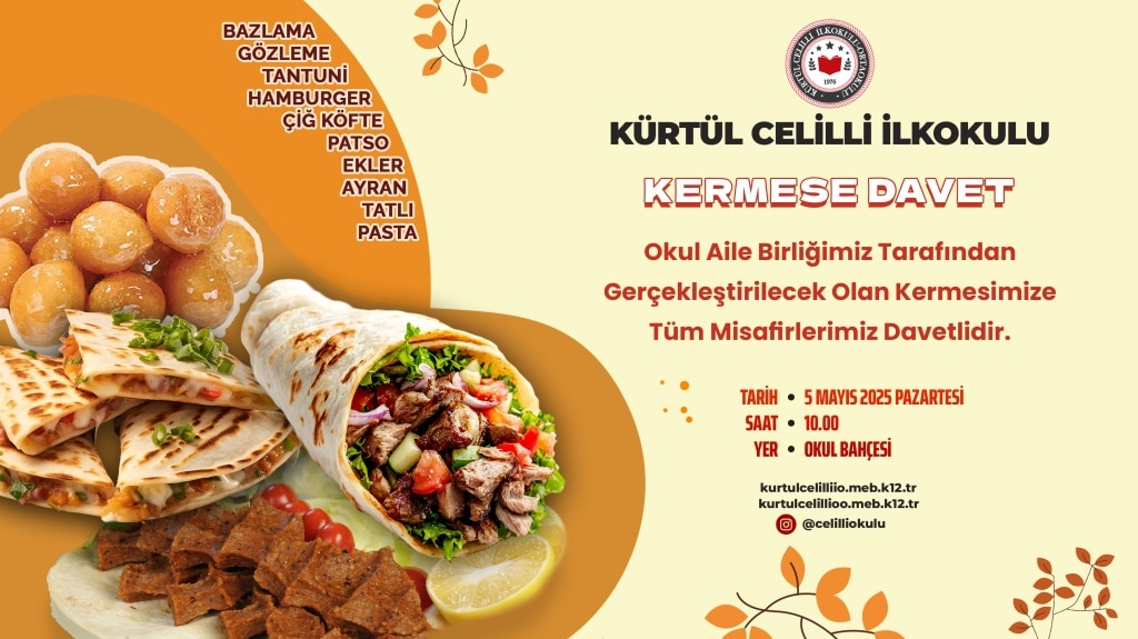 OKUL AİLE BİRLİĞİMİZ TARAFINDAN GERÇEKLEŞTİRİLECEK OLAN KERMESİMİZE TÜM MİSAFİRLERİMİZ DAVETLİDİR.